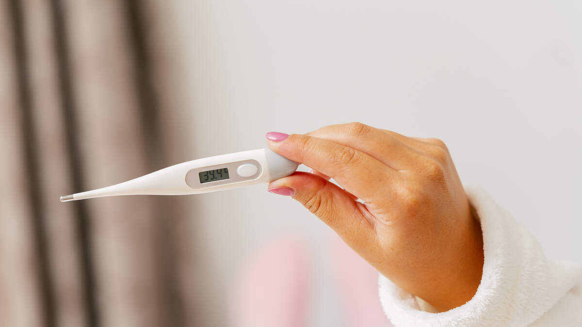 Cropped Hand Of Woman Holding Thermometer At Home