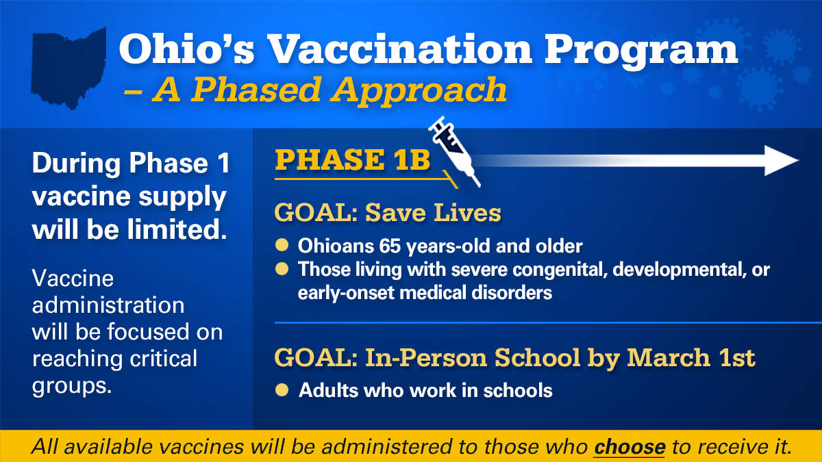 DeWine announced the goals of Phase 1B of COVID-19 vaccine distribution are to save lives and for schools to be fully open by March 1st.